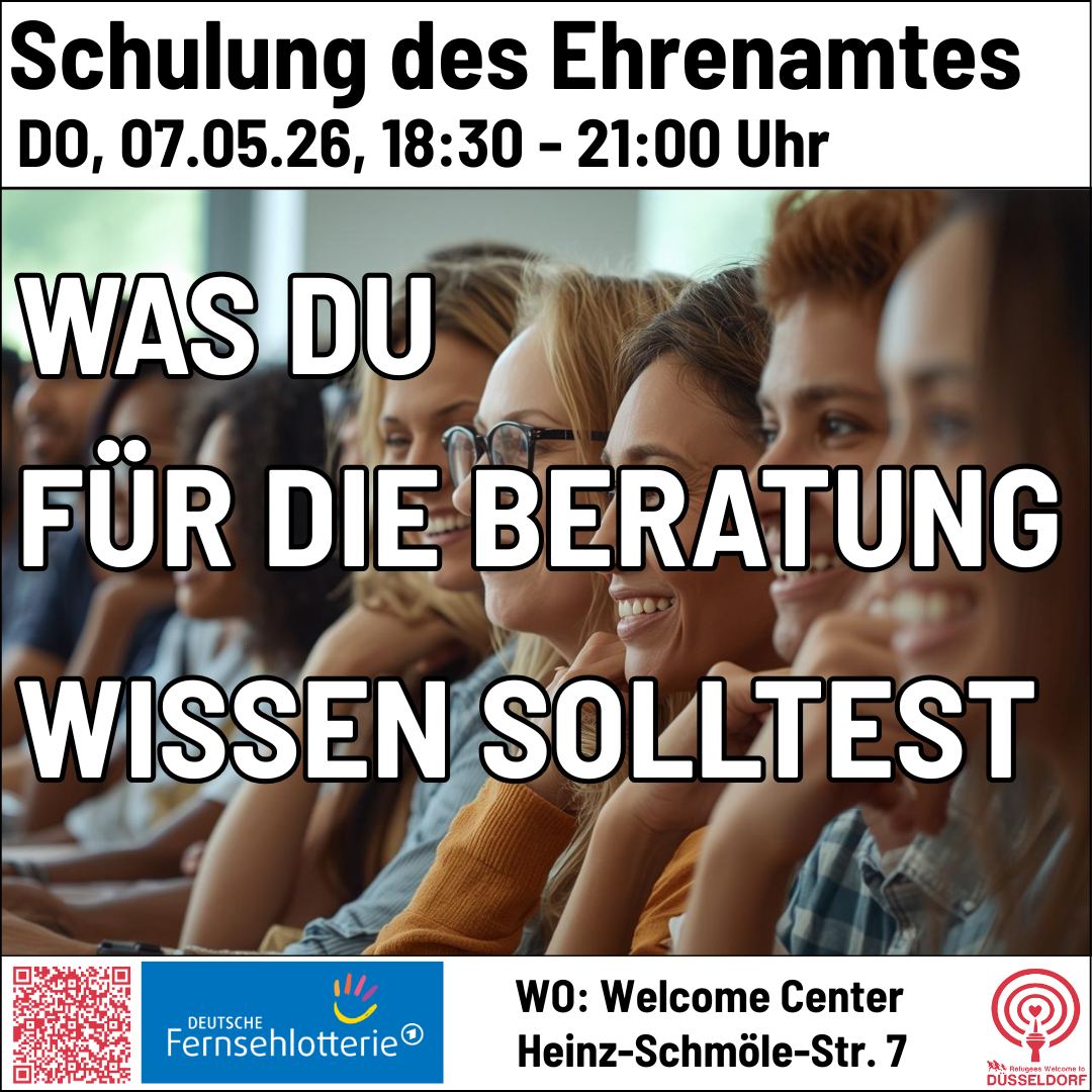 Am 7. Mai 2026 ist es wieder soweit: Wir schulen das Ehrenamt und machen Interessierte mit den "Grundlagen der Beratung" vertraut. Eine Anmeldung für die Schulung ist nicht erforderlich. Komm einfach vorbei, lerne gemeinsam mit anderen Ehrenamtlichen die Beratungs-Basics und habe Spaß dabei!