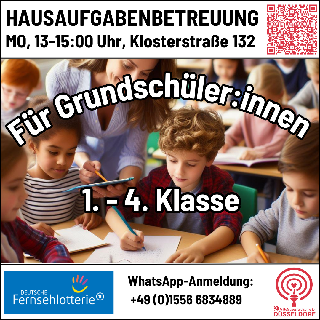 Manche Kinder, die ihren Grundschulbesuch in Deutschland beginnen, benötigen aus verständlichen Gründen besondere Unterstützung. Wir bieten für Schulkinder der Klassen 1 - 4 eine Hausaufgabenbetreuung an. Sie erhalten dort Hilfe bei den Hausaufgaben und beim Deutschlernen.