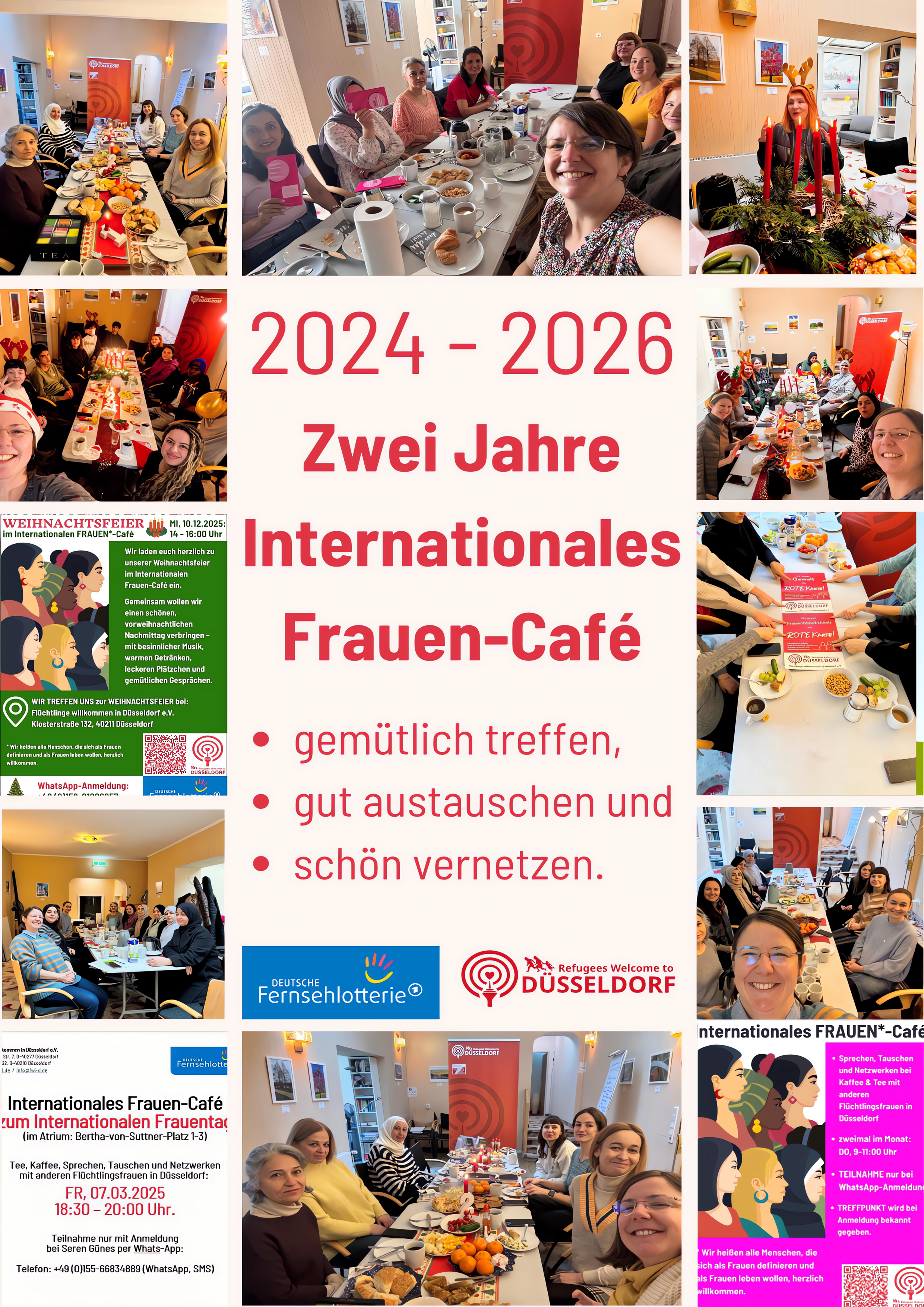 Am 25.04.2024 hat sich unser Internationales Frauen-Café zum ersten Mal getroffen – seitdem sind viele Frauen mit unterschiedlichen Geschichten, Hintergründen und Sprachen immer wieder zusammengekommen. In unseren Vereinsräumen auf der Kklosterstraße und bei unseren Freundinnen im Atrium ist ein Ort voller Austausch, Vertrauen und Freundschaft entstanden, an dem über Alltag, Flucht, Neubeginn und gemeinsames Leben gesprochen wird.