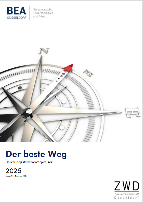 Die Zukunftswerkstatt Düsseldorf (ZWD/BEA) hat ihren neuen Beratungsstellen-Wegweiser “Der beste Weg“ zum kostenlosen Download veröffentlicht. Er beinhaltet ein Verzeichnis von nahezu allen Beratungsstellen zu allen Lebensbereichen in Düsseldorf. Sollten Beratungsstellen oder Einrichtungen nicht aufgeführt sein, wird um eine kurze Nachricht per E-Mail gebeten: