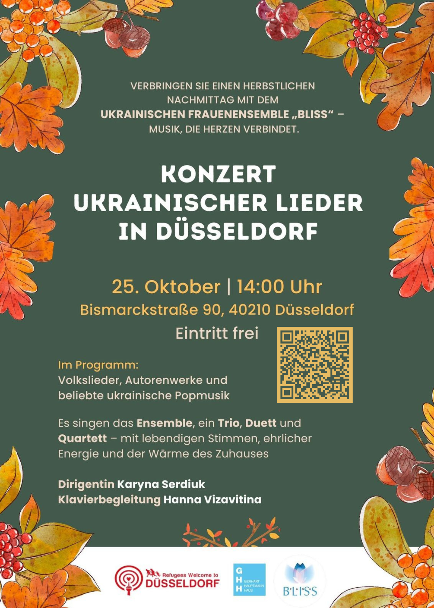 Wir laden Sie herzlich ein, diesen Herbsttag gemeinsam mit dem ukrainischen Frauenensemble „Bliss“ zu verbringen – einem Künstlerinnen-Kollektiv, das Menschen vereint, die Musik, Harmonie und die Ukraine lieben.